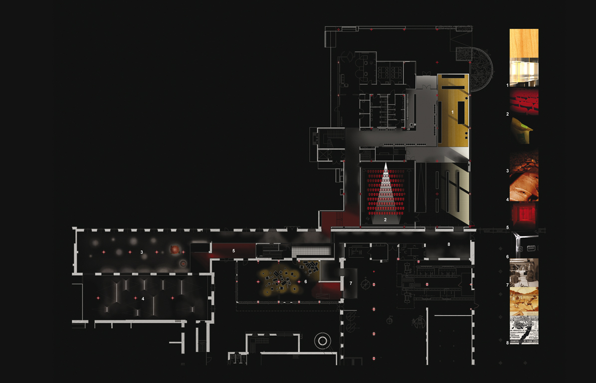 Scénographie de musée, kiosque, mobilier d’exposition, murs d’ombres chinoises, cartographie, frise historique, chaîne de production à la programmation interactive. Signalétique & habillage graphique. Supports de communication, livret d’exposition, invitations, communiqués de presse.