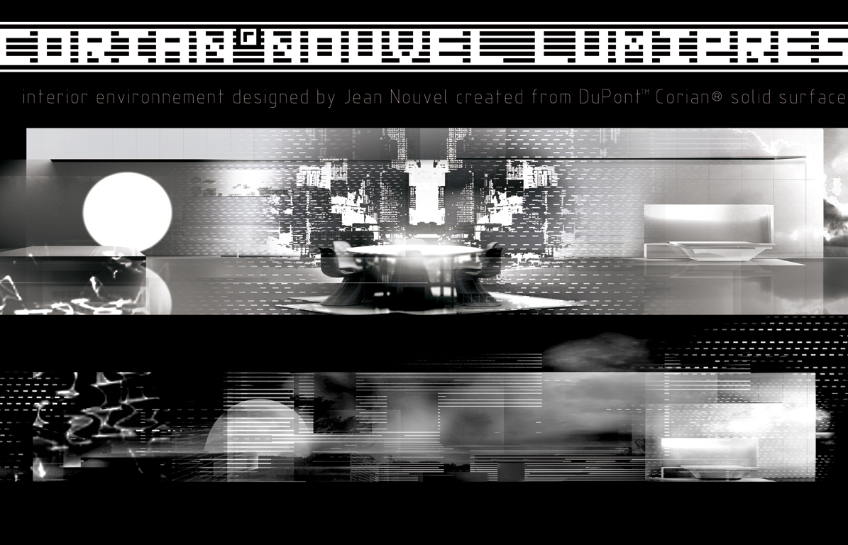 L’équipe de Jean Nouvel a travaillé avec le « Corian » de Dupont de Nemours, matériau plastique innovant. Un prototype d’appartement travaillé en éclairage, où la lumière sculpte la matière. Concept présenté à la design-week de Milan. Six espaces domestiques : cuisine, salle de bain, chambre, salon, bibliothèque et salle à manger.
