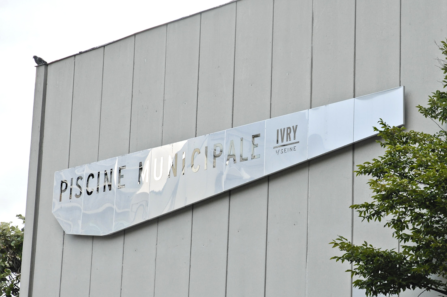 Après rénovation, la piscine municipale rouvre au public : la nouveauté ? Un revêtement du bassin en inox. L’identité visuelle, l’enseigne en façade et la signalétique intérieure sont redessinées en acier inoxydable. Les baies vitrées sont rhabillées de vitrophanie dépolie avec les paroles recomposées récoltées auprès des usagers. L’inauguration du bassin ? Une baignade nocturne gratuite et ouverte au grand public avec projection vidéo géante.
